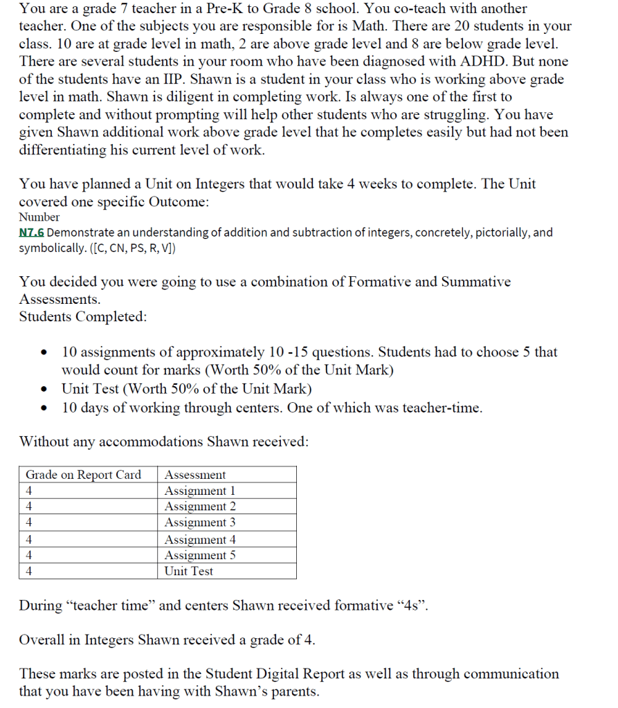 7) Would Shawn’s mark be different from the above Report Card? If yes, HOW? If no, Why not?