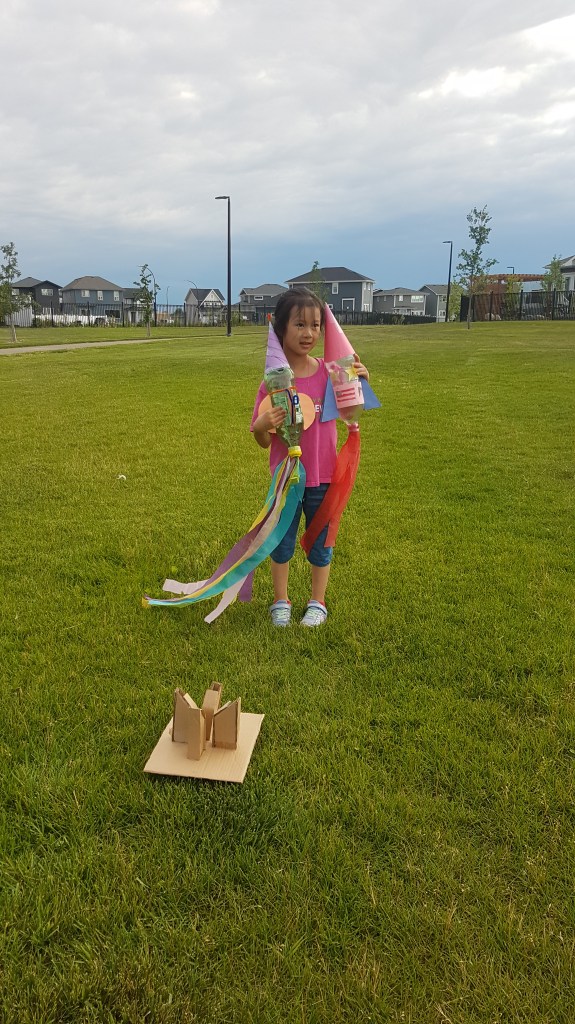 It was also fun watching the adults fuss over the little aerodynamic details of a hot glued bottle rocket.