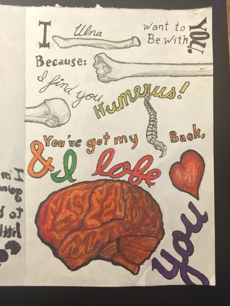 I also got to look back at some of the ‘cheesy silly’ things I’ve done in the past through a new lens. I’m actually pretty proud of this card, and my anatomical knowledge definitely helped support my weaker drawing skills.